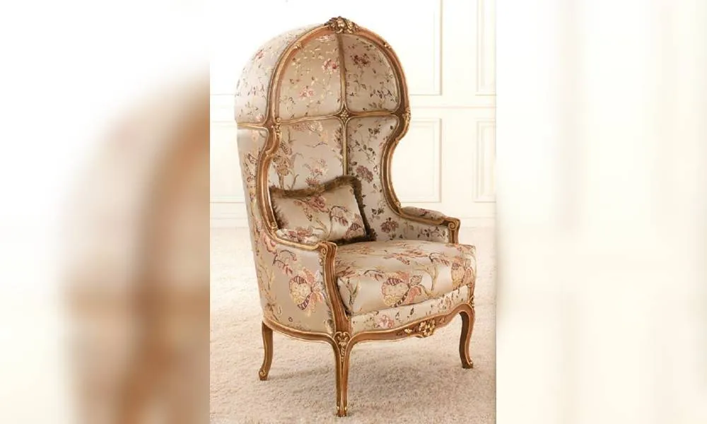 Кресло с высокой спинкой. Декорировано резными элементами. Наполнение - полиуретан. Возможны другие варианты обивки.