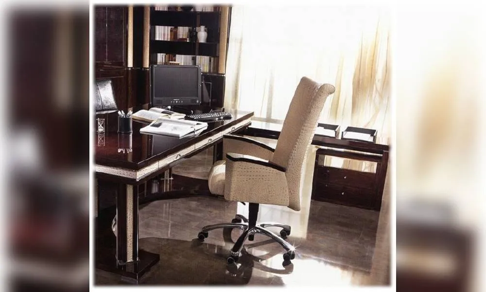 Кресло руководителя, на колесиках, деревянные подлокотники. Декор ручной работы. Возможны другие цветовые варианты отделки.
