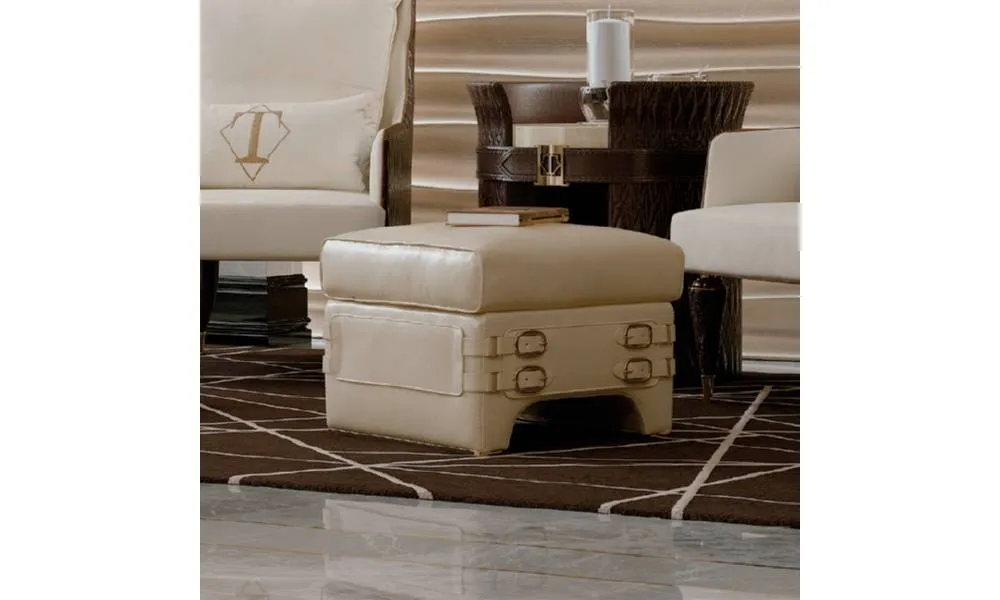 Пуф со структурой из дерева. Полностью обит кожей, возможны другие виды обивки.