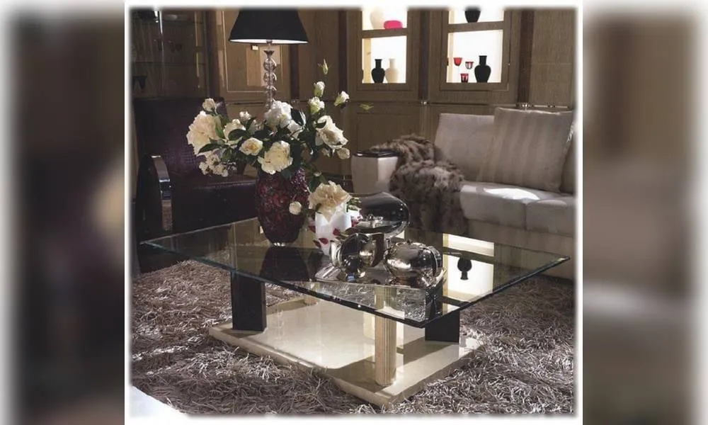 Журнальный столик со стеклянной столешницей. Декор ручной работы. Возможны другие цветовые варианты отделки.