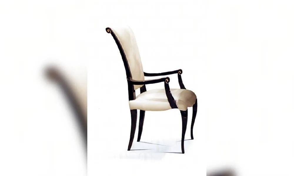 Стул с подлокотниками, с обитым мягким сидением и спинкой. Возможны другие варианты отделки и обивки.