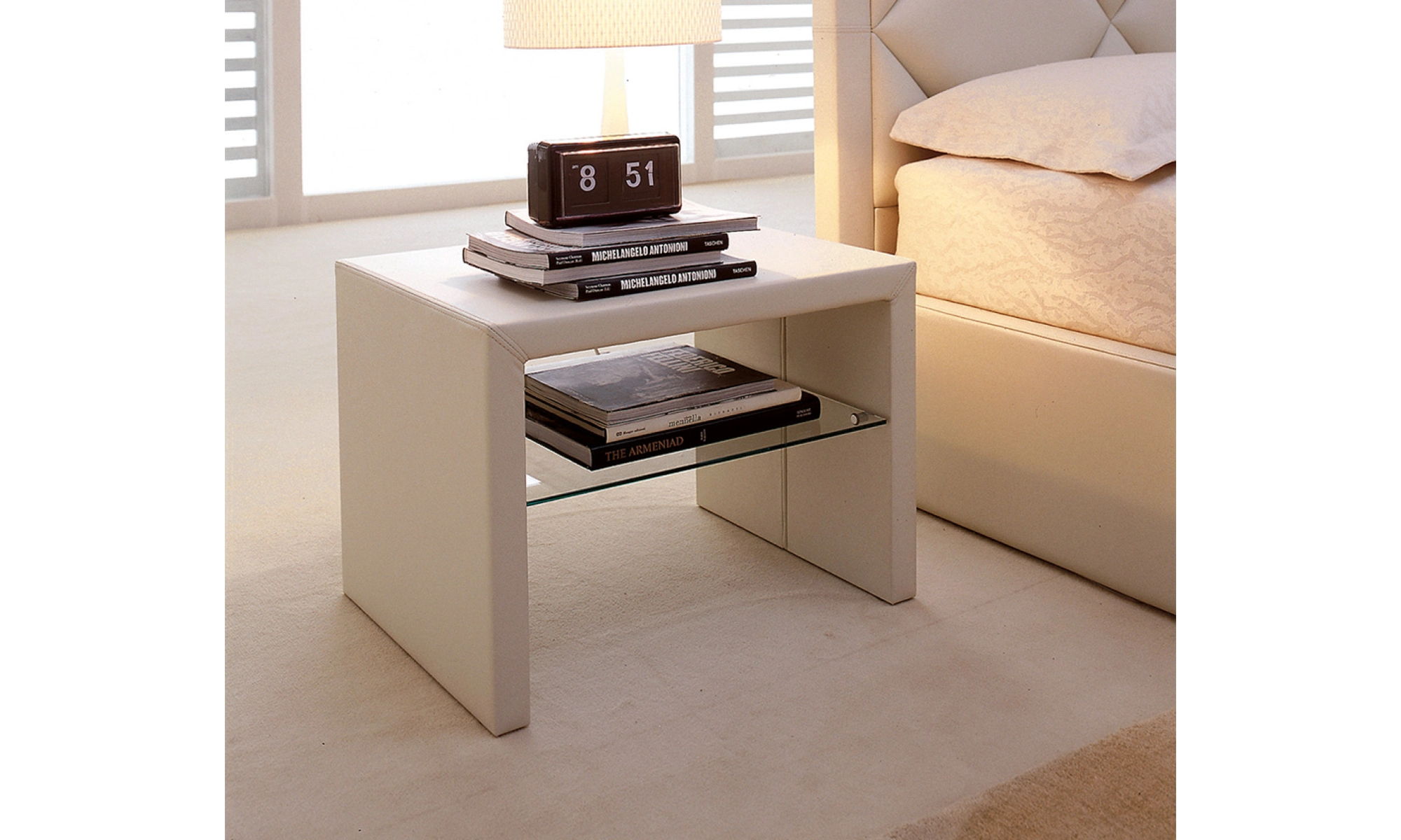 Тумба выполнена в отделке (кожа): leather 947 oyster.